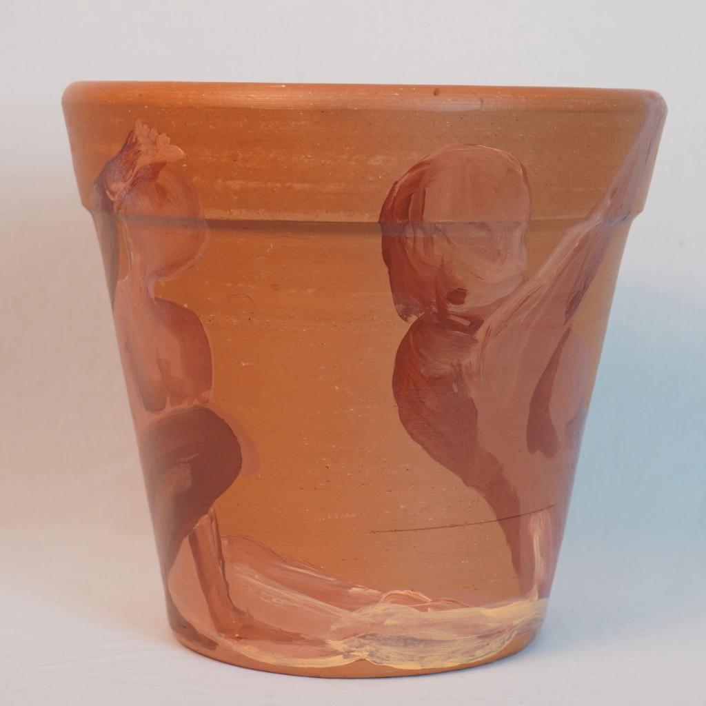 Esse vaso retrata mulheres tentando ocupar e caber em espaços que não necessariamente foram feitos para elas. Esse vaso é uma alegoria a resistência feminina em permanecer ocupando novos lugares.